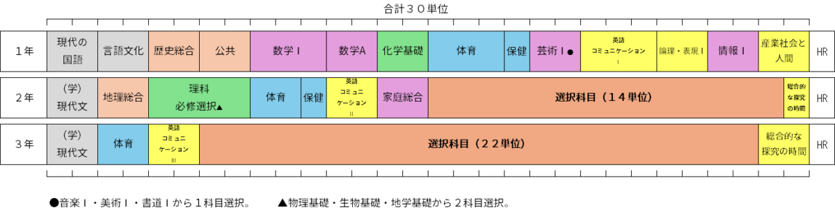 進学に必要な教科科目から演習を中心とした講座も開設しています。5つの系列を超えて、学びたい分野を横断して選択することができます。芸術・工業・看護など専門性の高い講座で、先取りした学習ができます。興味・関心を高め、教養を身につけるための講座もあります。選択科目は、少人数であることが多く、先生方との距離が近く、質問もしやすいです。自分のやりたいことを実現するため、情報収集と分析を重ねて、多様な科目と出会ってください。