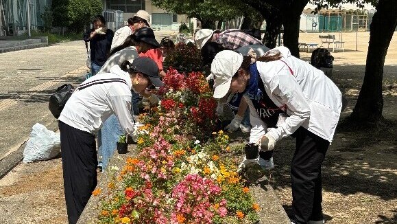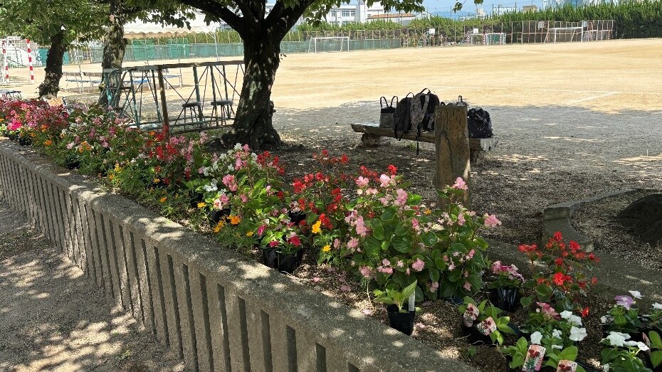 PTA環境保健委員会では、花壇のお花を植え替えています。