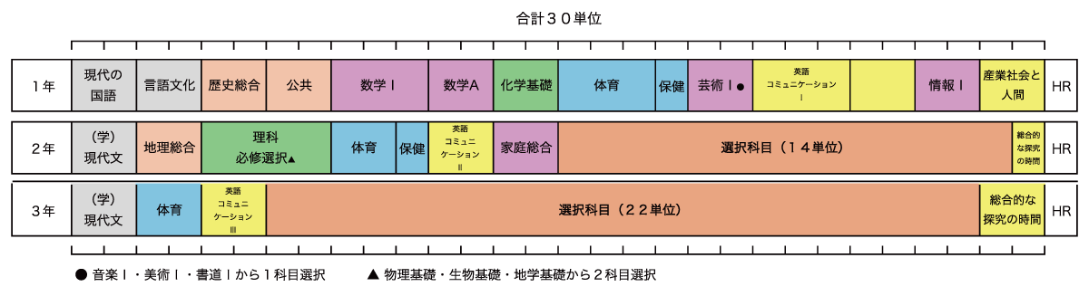 芦間高校は、月曜日7限、火~金曜日6限で授業をしています。(授業30時間+HR1時間の計31時間です。)