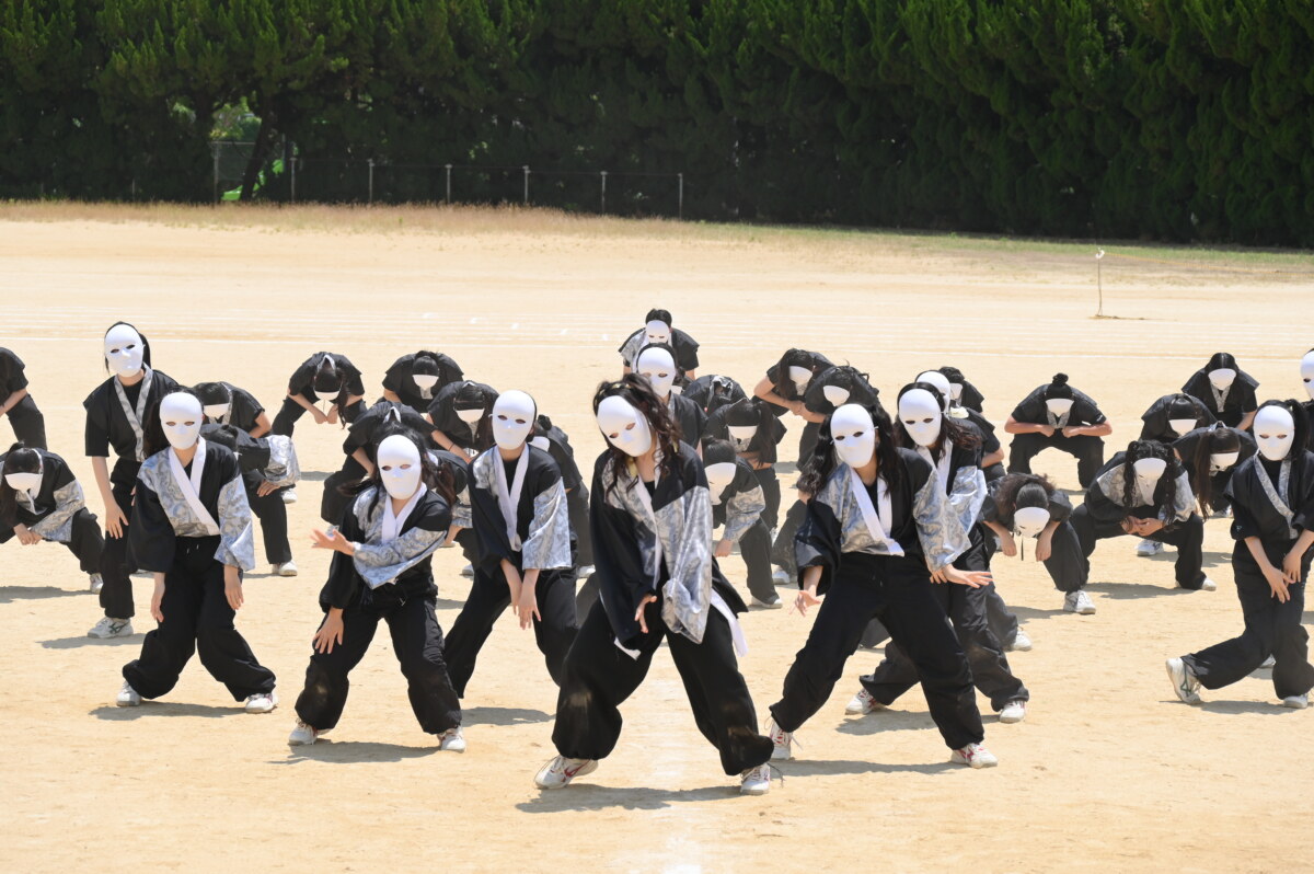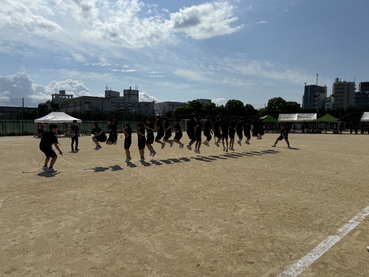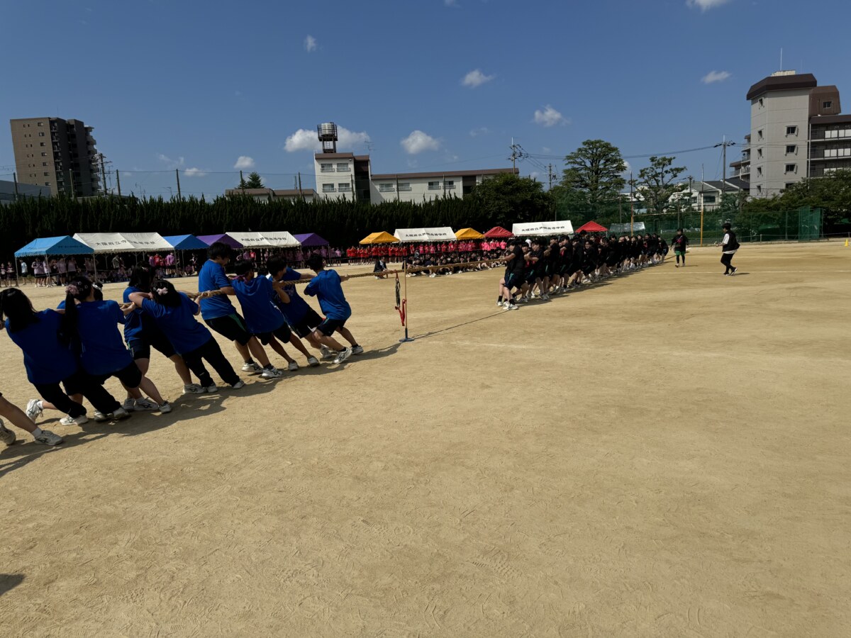 総勢100名を超える団パフォーマンスは迫力満点でした。競技数も少しずつ増えてきて、学年関係なく交流する姿が見られ、暑さに負けず笑顔満点の体育祭でした。