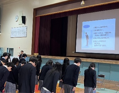 6限に、菅公学生服の川元さまを講師にお迎えし、「着こなし講座」を実施しました。講座では、正しい制服の着用方法に加え、今後の進学や就職に向けて身につけておくべき社会生活での服装マナーについてご講話いただきました。また、制服がより美しく見える座り方やお辞儀の仕方などの実演もあり、大変充実した内容となりました。川元さま、ありがとうございました。