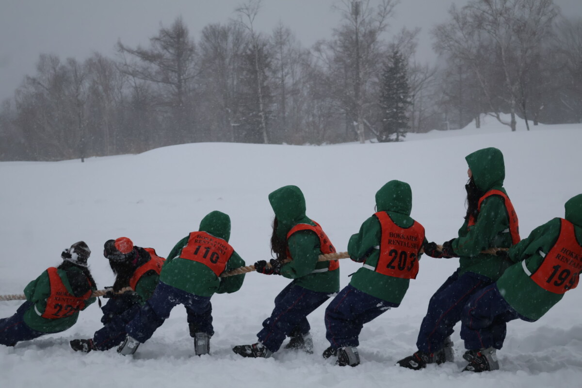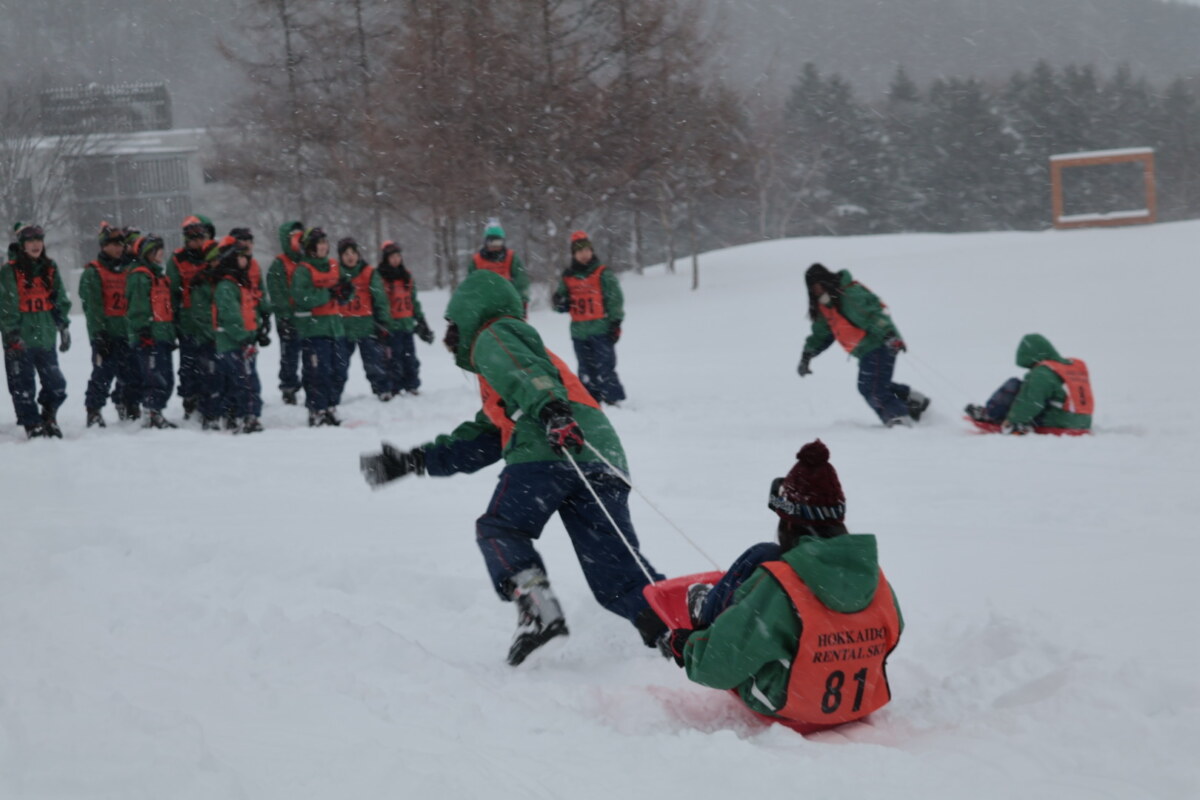 閉校式のあとは雪上レクへ。雪上カルタにソリ、綱引きと、笑い声が絶えない時間に!