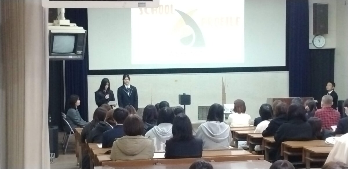 校長より学校説明の後、3年生の2名も学校生活について話をしました。