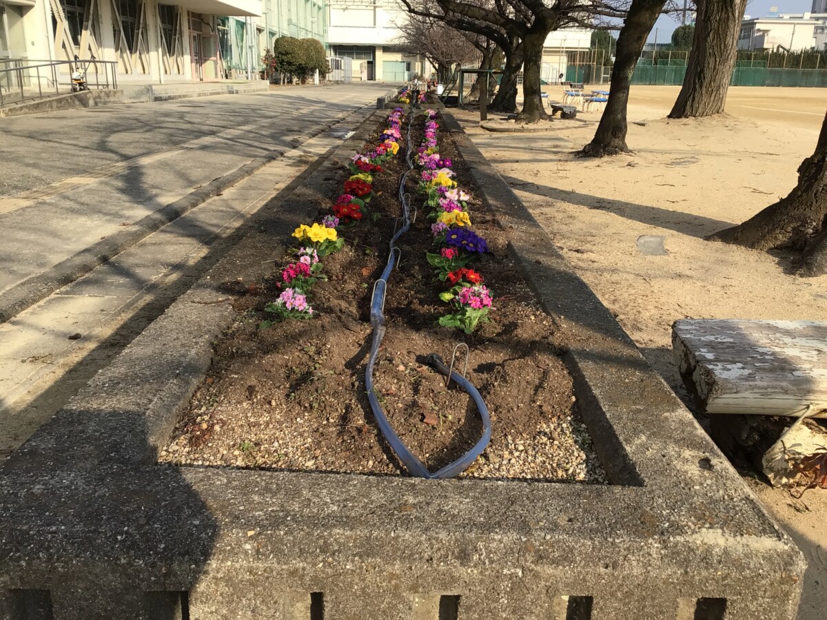 環境保健委員会では、玄関前の花壇の花の植え替えをしてくださいました。